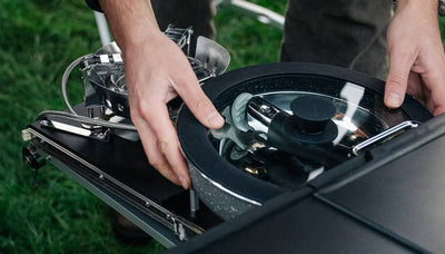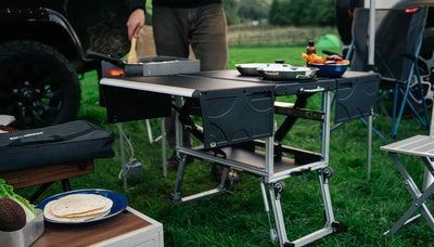 The KitchenBox is a hassle-free kitchen built into a compact box. Easy to carry and designed to fit in your car boot, it sets up in seconds and includes everything you need to cook and enjoy delicious meals.